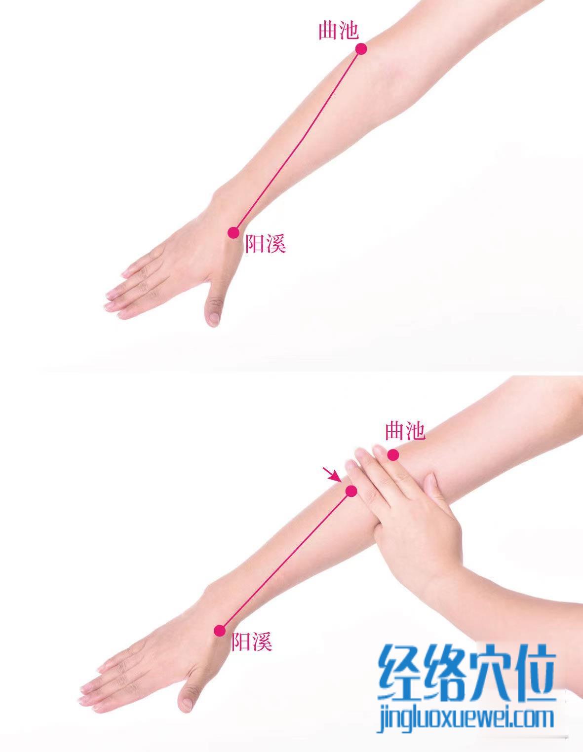 【位置】肘橫紋下2寸,陽溪與曲池連線上
