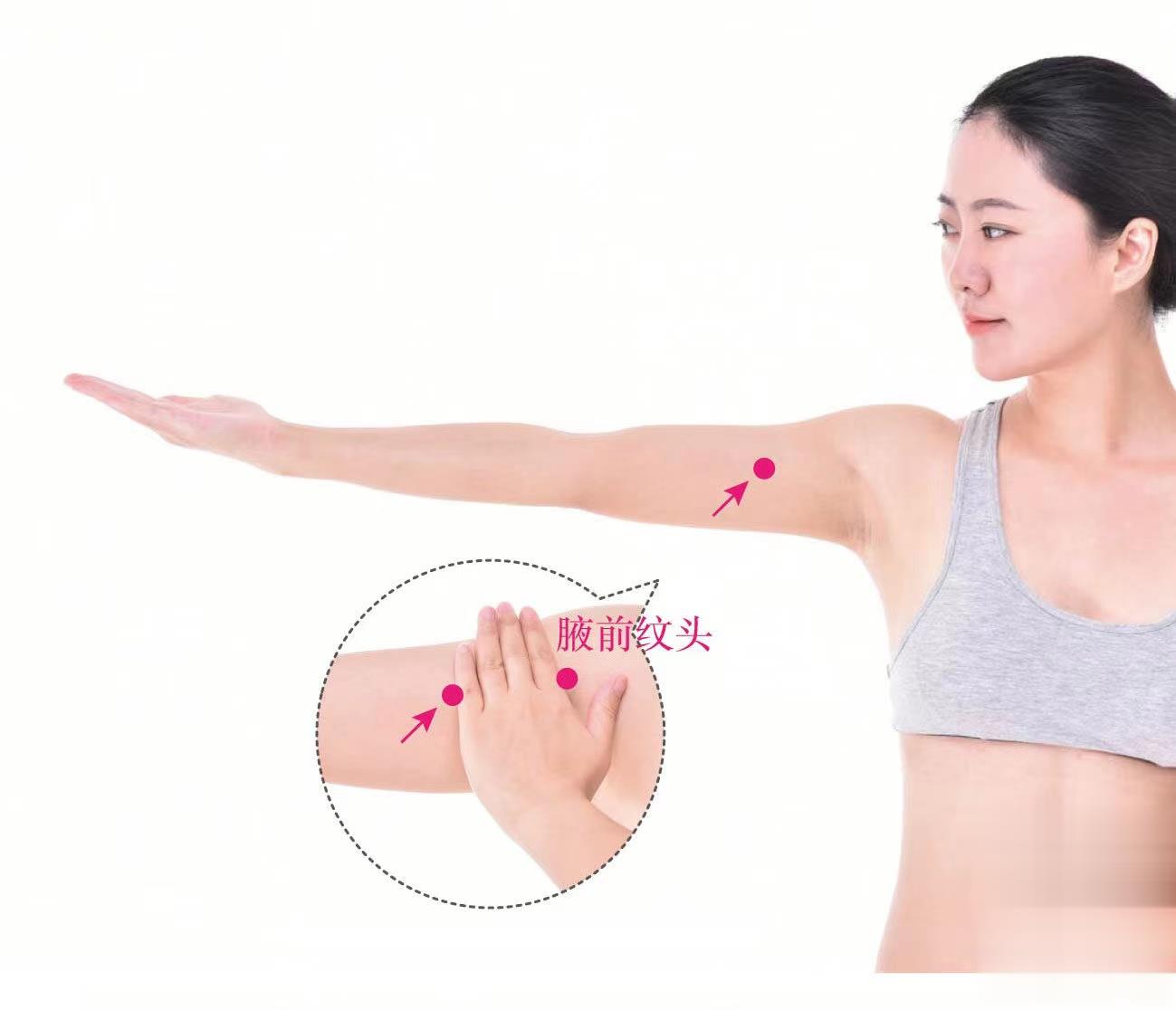 伸臂仰掌,腋前皺襞上端與肘橫紋上的曲澤連成直線,當肘橫紋上7寸處取穴。