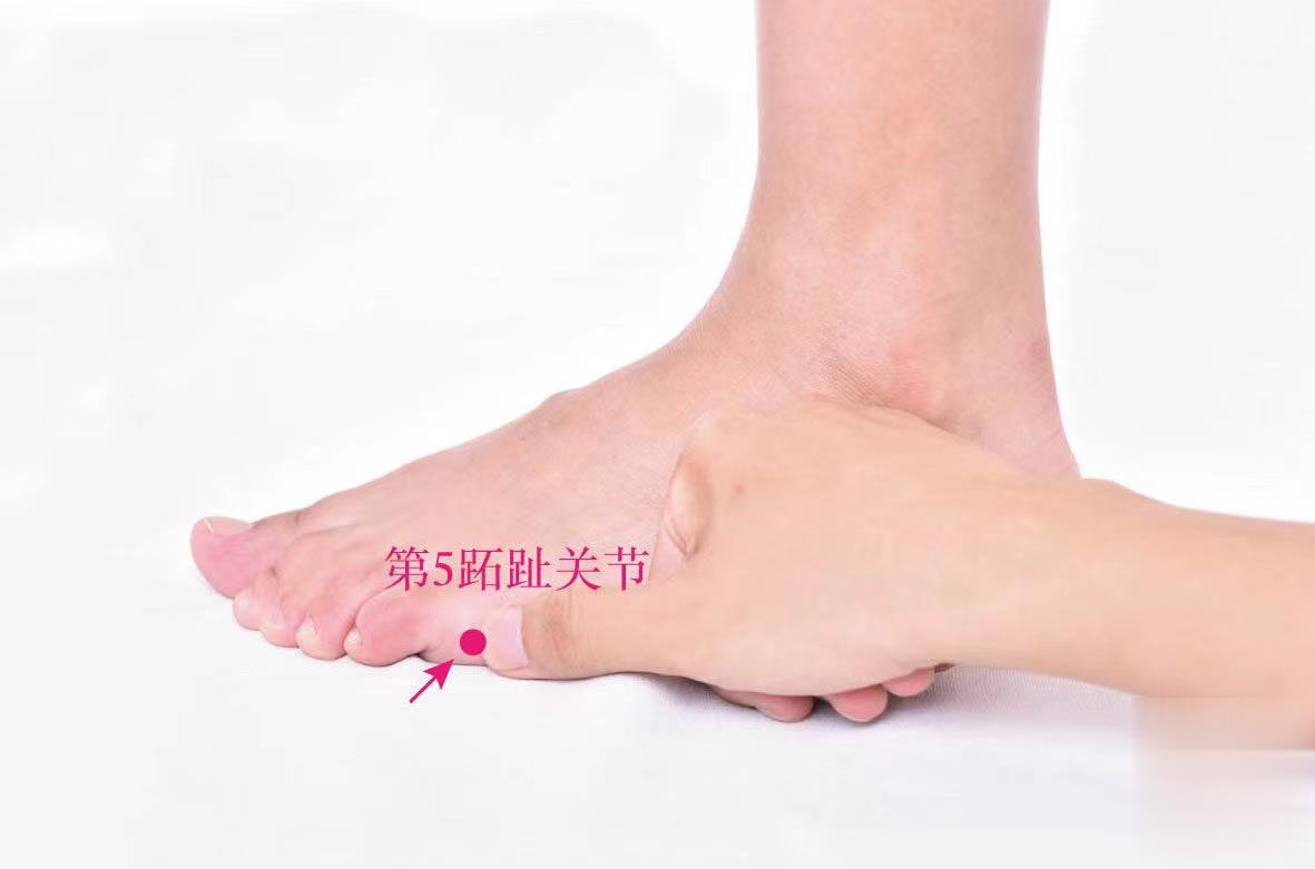 【取穴方法】足通谷穴位于人體的足外側(cè),足小趾本節(jié)(第5跖趾關(guān)節(jié))的前方,赤白肉際處。