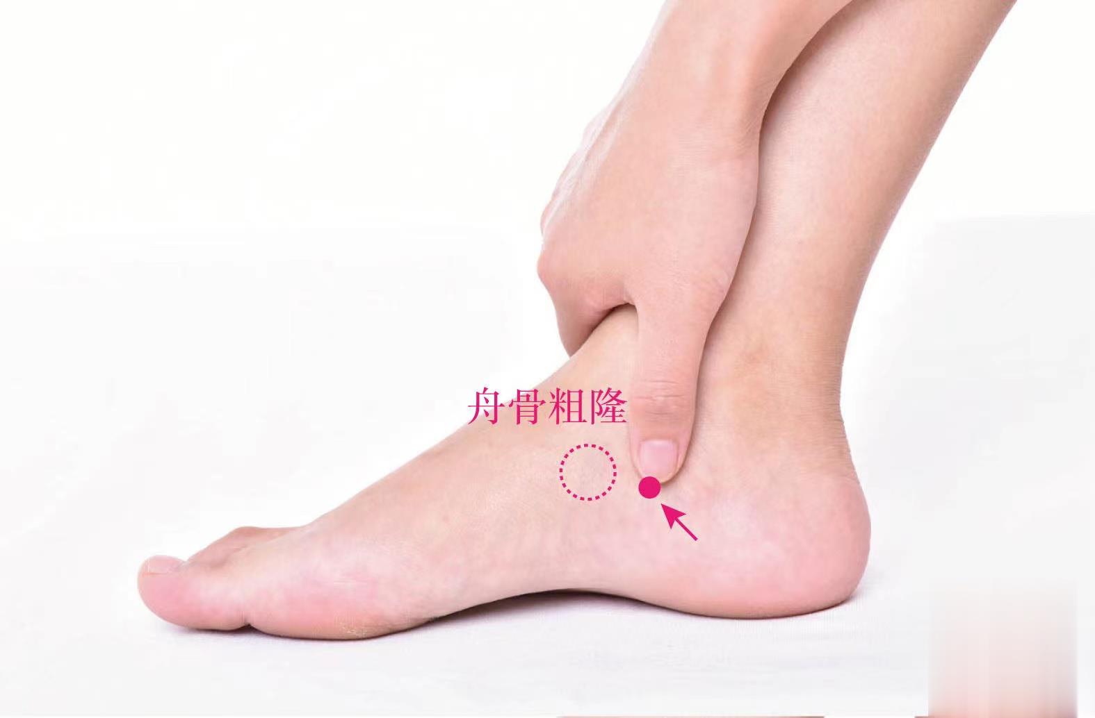 【取穴方法】正坐或仰臥位,在舟骨粗隆下緣凹陷處取穴。