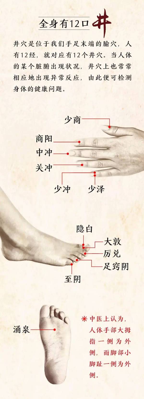導(dǎo)讀:按摩12個(gè)“井穴”養(yǎng)全身!中醫(yī)專家親授按摩手法(附穴位圖)