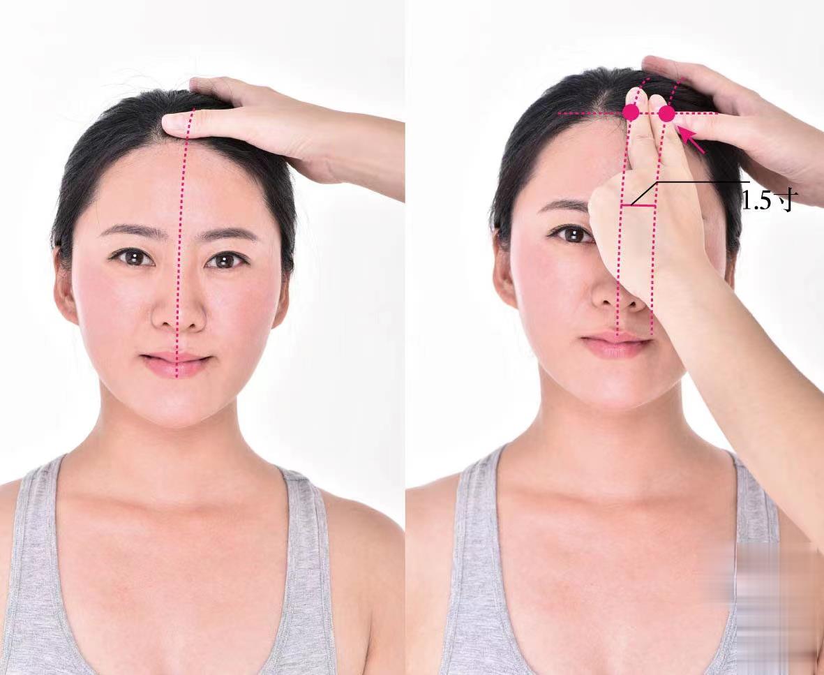 【位置】在頭部,前發(fā)際正中直上1寸,旁開(kāi)1.5寸。