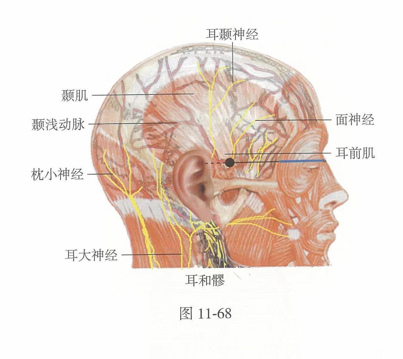 【位置】在頭部,鬢發(fā)后緣,耳郭根的前方,顳淺動(dòng)脈的后緣。