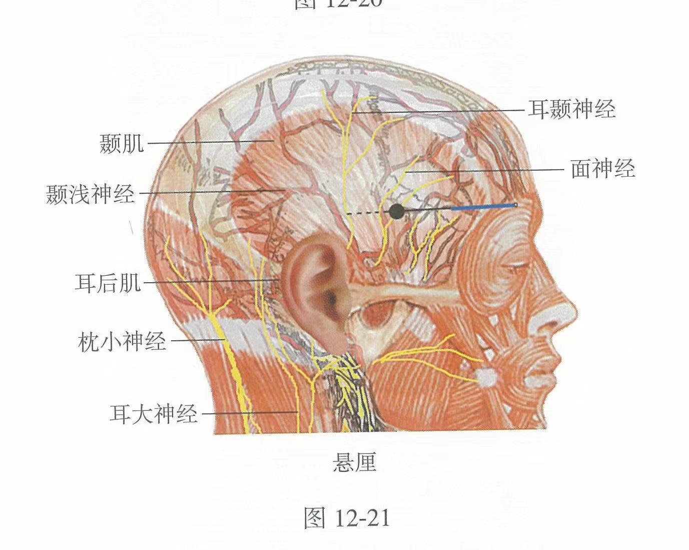 【解剖】在顳肌中;有顳淺動(dòng)、靜脈額支;布有耳顳神經(jīng)顳支。