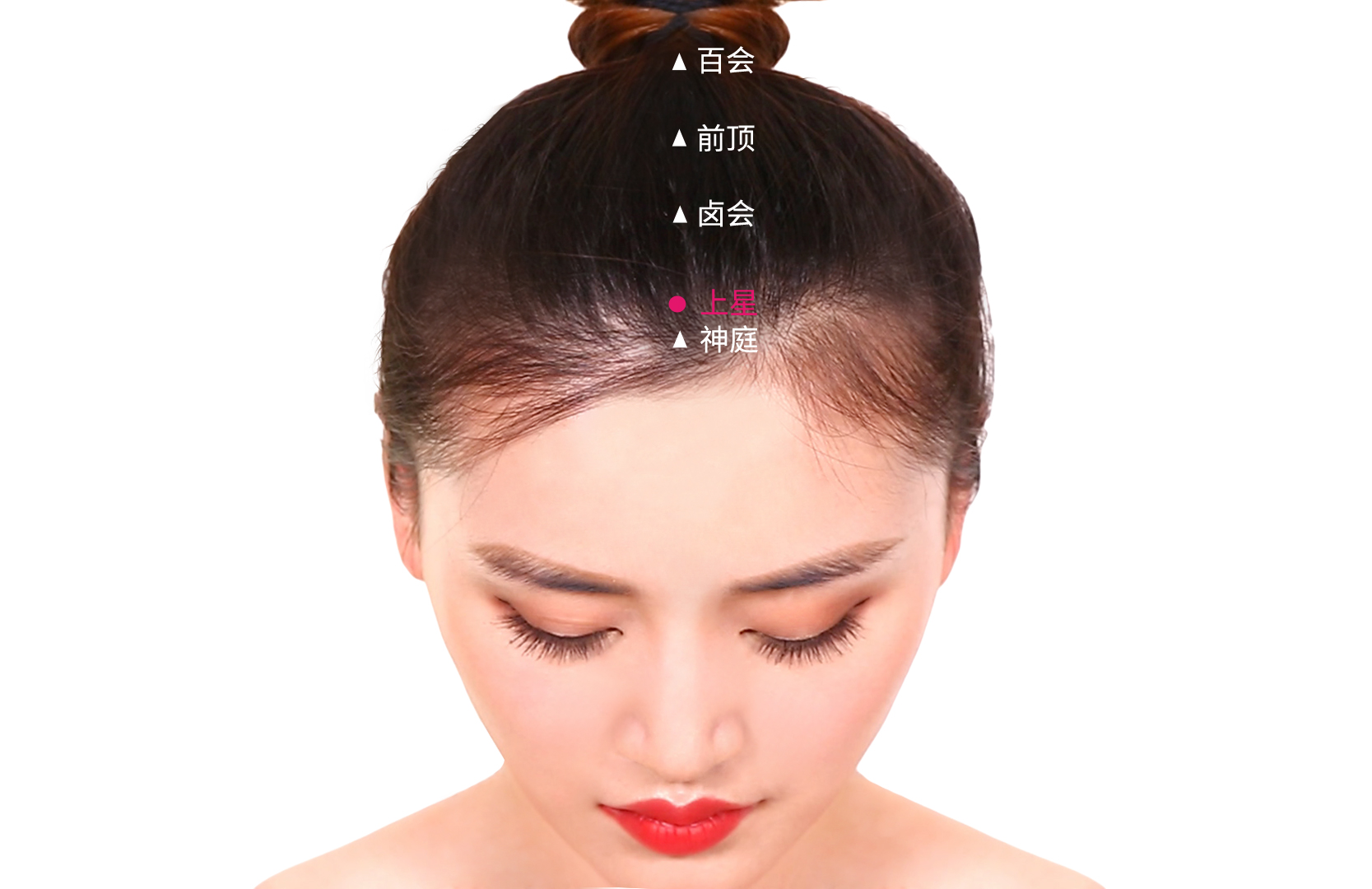 上星。上,上行也。星,指穴內(nèi)的上行氣血如星點般細小也。該穴名意指督脈氣血在此吸熱后緩慢上蒸升。本穴物質(zhì)為神庭穴傳來的溫?zé)崴畾?,在本穴為緩慢蒸升之狀,上行氣血如星點般細小,故名。