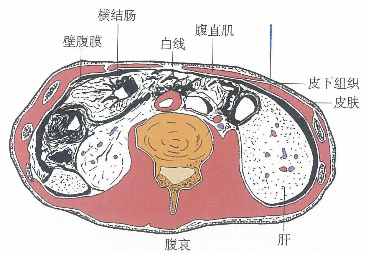 【解剖】皮膚→皮下組織→腹外斜肌→腹內(nèi)斜肌→腹橫肌。淺層布有第7、8、9胸神經(jīng)前支的外側(cè)皮支和胸腹壁靜脈的屬支。深層有第7、8、9胸神經(jīng)前支的肌支及伴行的動、靜脈。