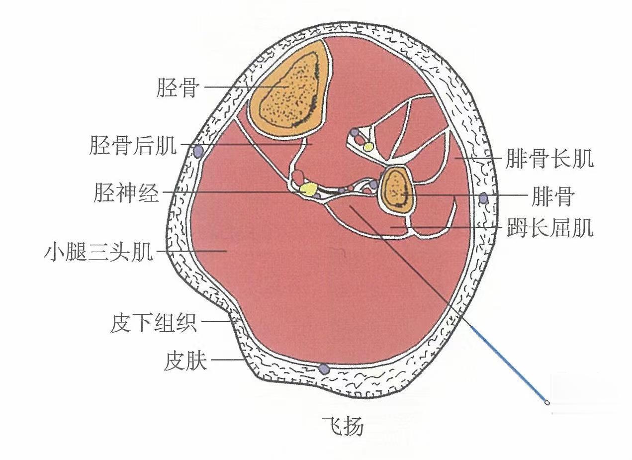 【解剖】有腓腸肌及比目魚(yú)肌;有小隱靜脈和脛后動(dòng)、靜脈分布;布有腓腸外側(cè)皮神經(jīng)。