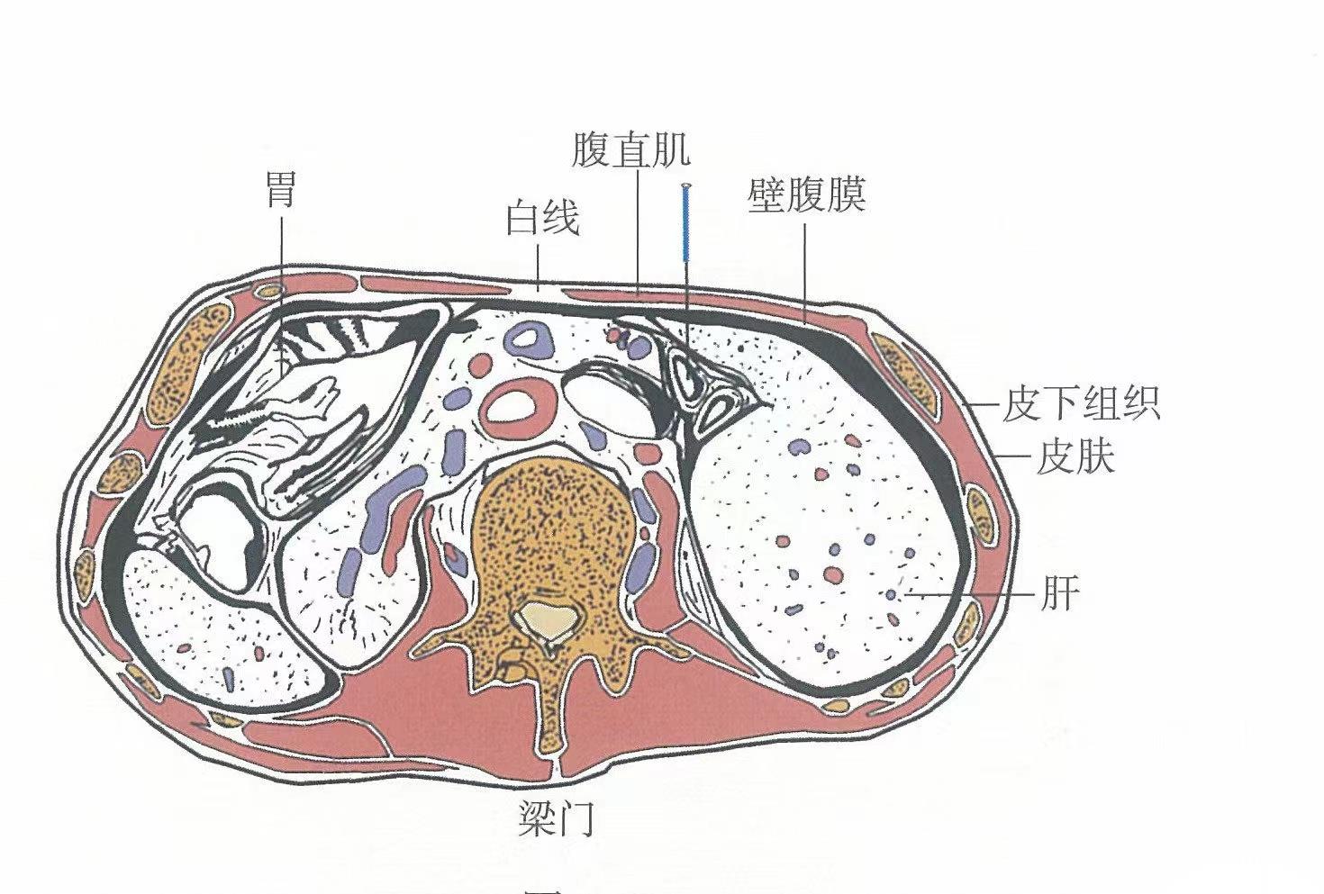 【解剖】皮膚→皮下組織→腹直肌鞘前壁→腹直肌。淺層布有第7、8、9胸神經(jīng)前支的外側(cè)皮支和前皮支及腹壁淺靜脈。深層有腹壁上動(dòng)、靜脈的分支或?qū)僦В?、8、9胸神經(jīng)前支的肌支。