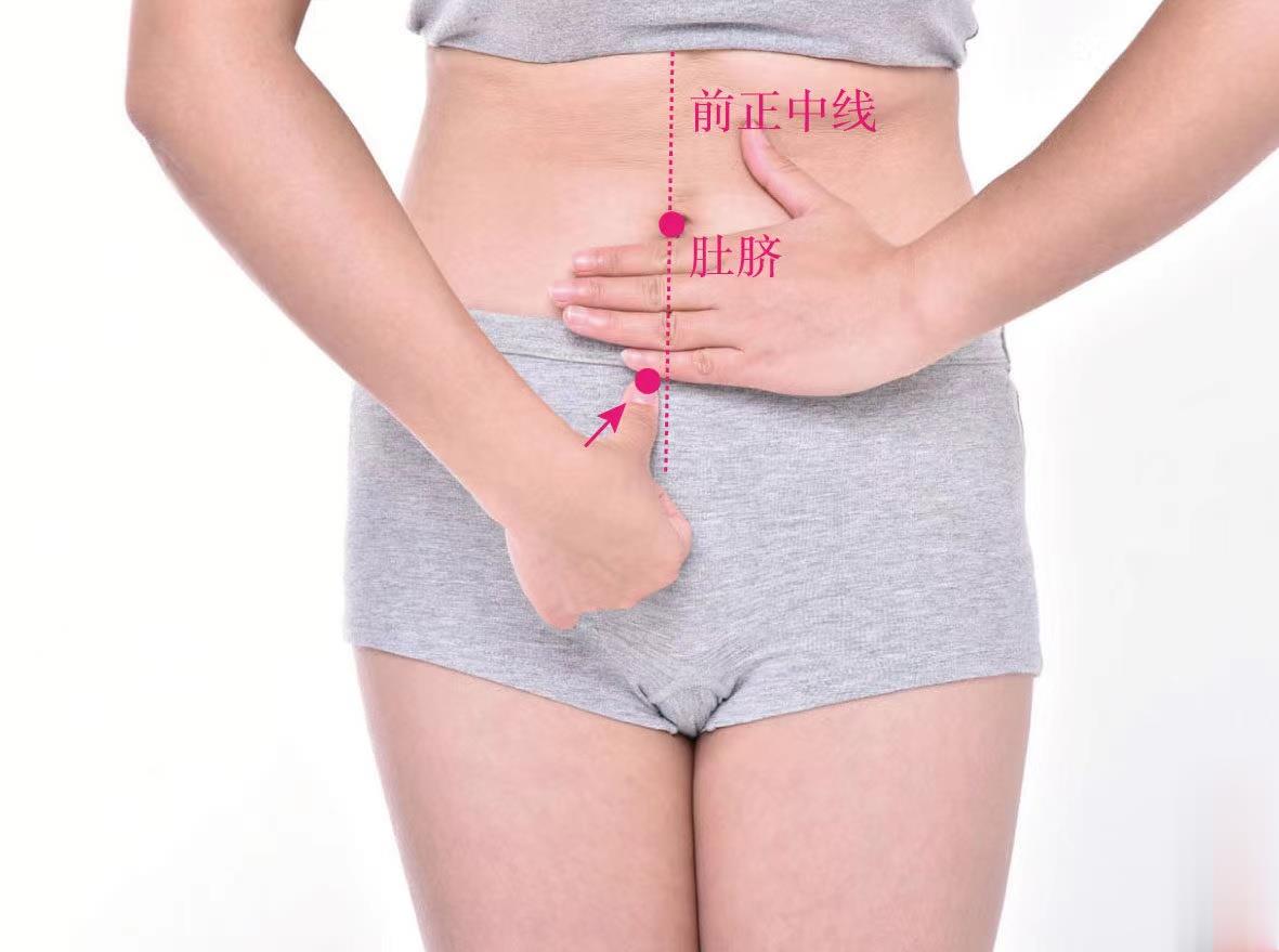 仰臥位,當(dāng)臍中至恥骨聯(lián)合上緣的上3/5與下2/5交點(diǎn)處,旁開中線0.5寸處取穴。