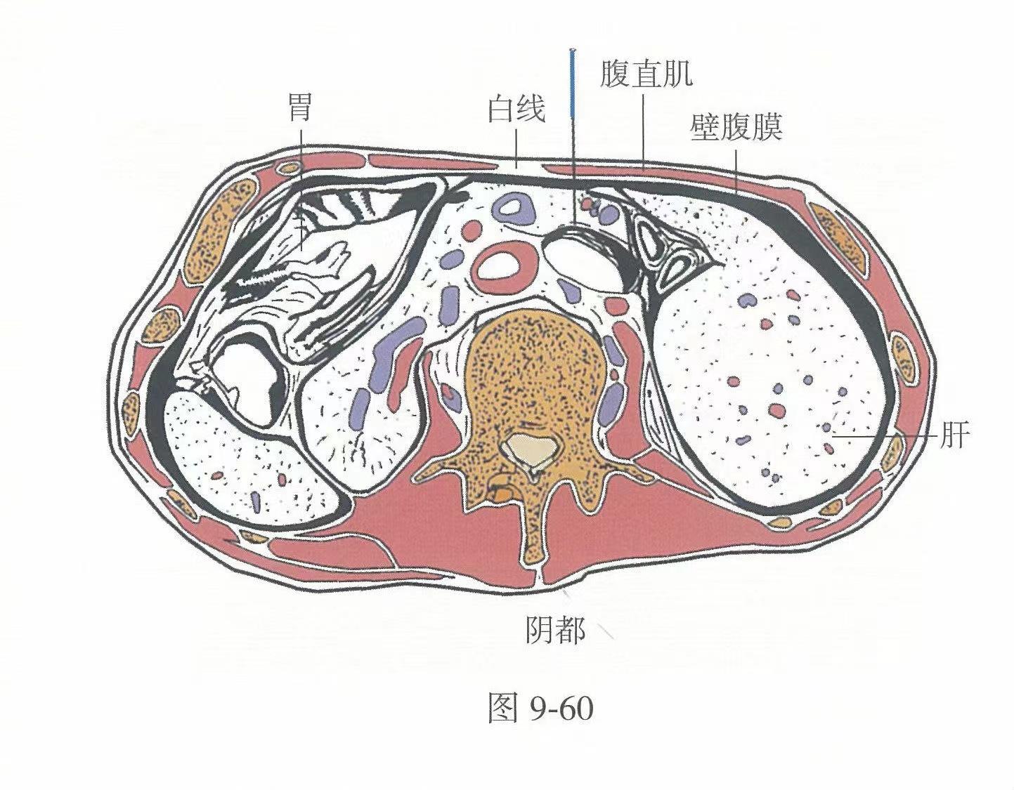【解剖】皮膚→皮下組織→腹直肌鞘前壁→腹直肌。淺層布有腹壁淺靜脈,第7、8、9胸神經(jīng)前支的前皮支及伴行的動(dòng)、靜脈。深層有腹壁上動(dòng)、靜脈的分支或?qū)僦?,?、8、9胸神經(jīng)前支的肌支和相應(yīng)的肋間動(dòng)、靜脈。