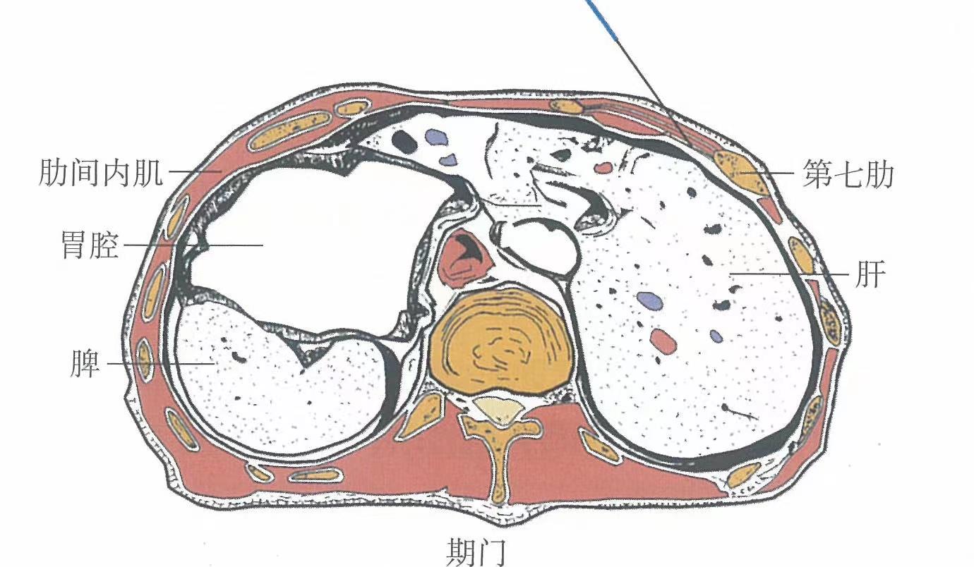 【解剖】皮膚→皮下組織→胸大肌下緣→腹外斜肌→肋間外肌→肋間內(nèi)肌。淺層布有第6肋間神經(jīng)的外側(cè)皮支,胸腹壁靜脈的屬支。深層有第6肋間神經(jīng)和第6肋間后動(dòng)、靜脈的分支或?qū)僦А?br />