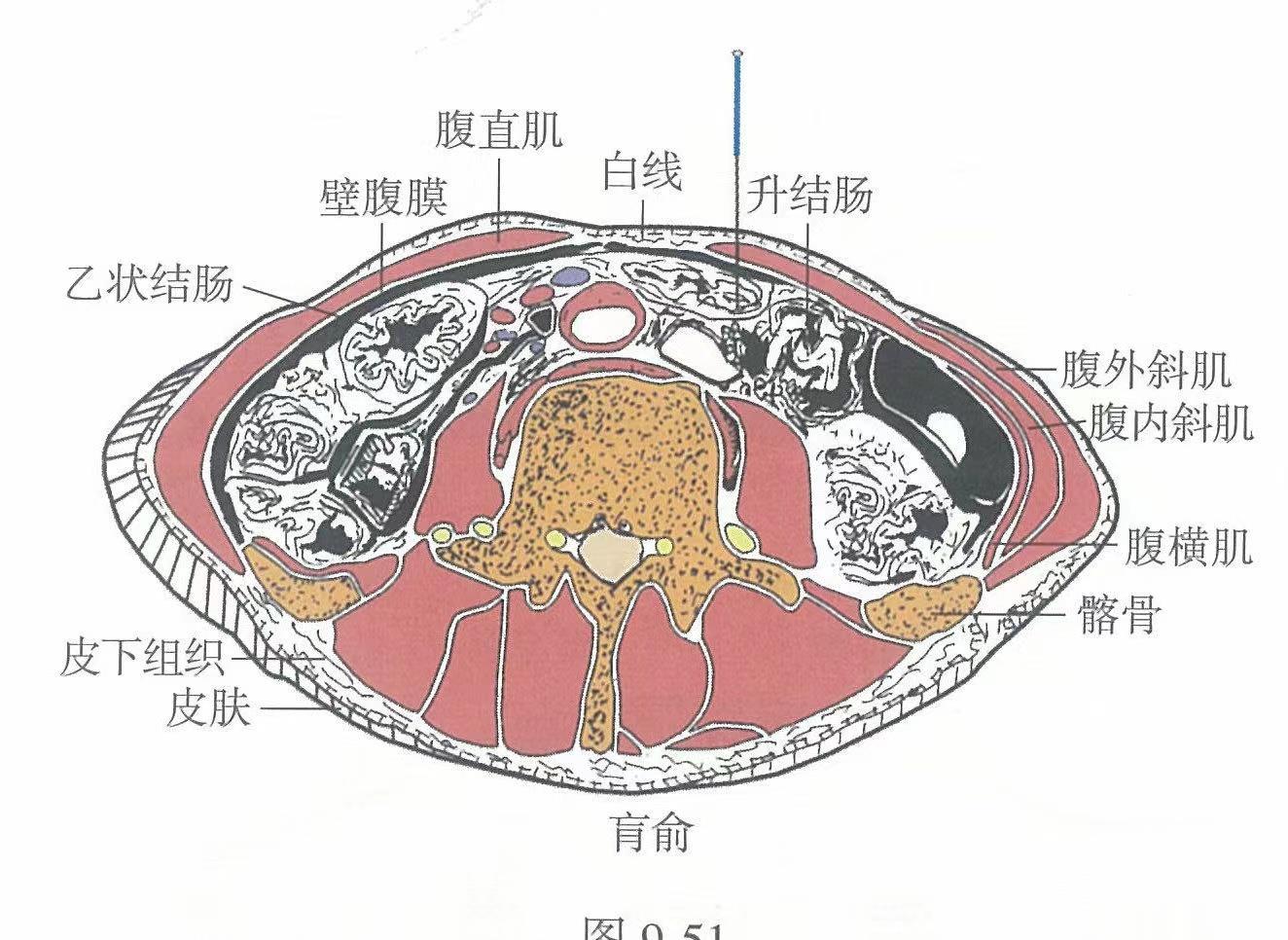 【解剖】皮膚→皮下組織→腹直肌鞘前壁→腹直肌。淺層布有臍周皮下靜脈網(wǎng),第9、10、11胸神經(jīng)前支的前皮支及伴行的動(dòng)、靜脈。深層有腹壁上、下動(dòng)、靜脈吻合形成的動(dòng)、靜脈網(wǎng),第9、10、11胸神經(jīng)前支的肌支和相應(yīng)的肋間動(dòng)、靜脈。